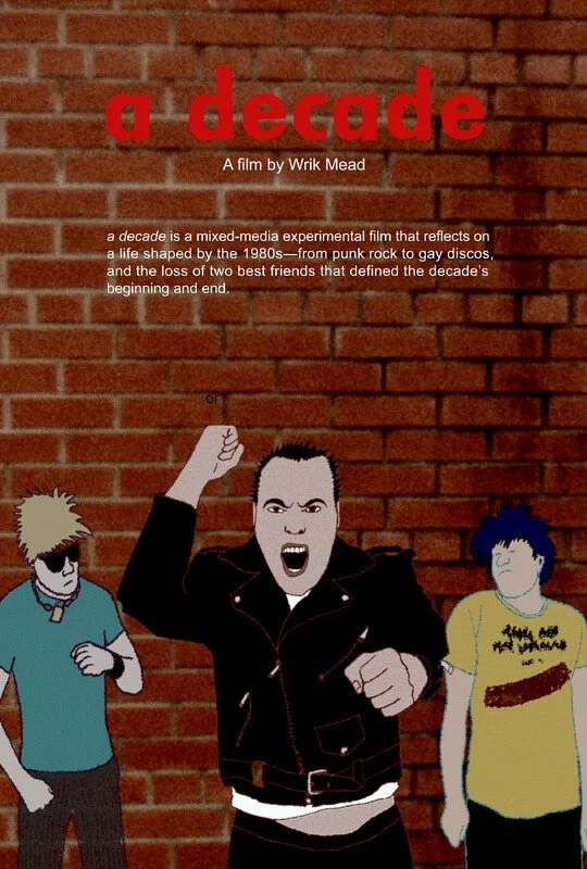 Synopsis: a decade is an experimental film that fuses analog and digital techniques and reflects on the artist's life through the 1980s.—a time of rebellion, discovery, and loss. Blending Super 8 and 16mm film, digital animation and personal reflection, the film drifts from the raw urgency of punk rock to the glittering pulse of gay discos. Bookended by the deaths of his two closest friends, it’s a haunting and poetic elegy to a transformative era, where identity and community thrived amidst the shadows.